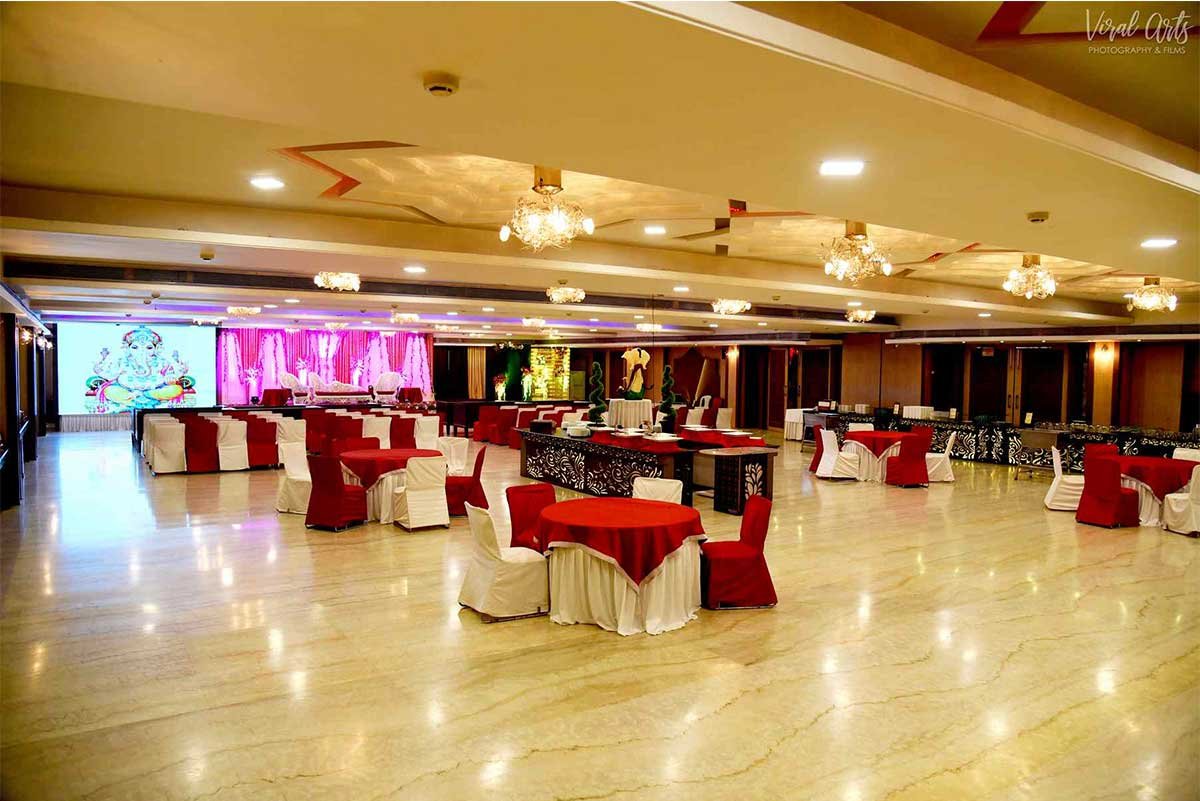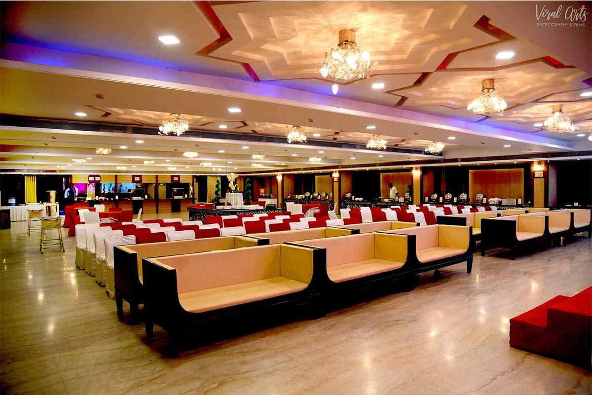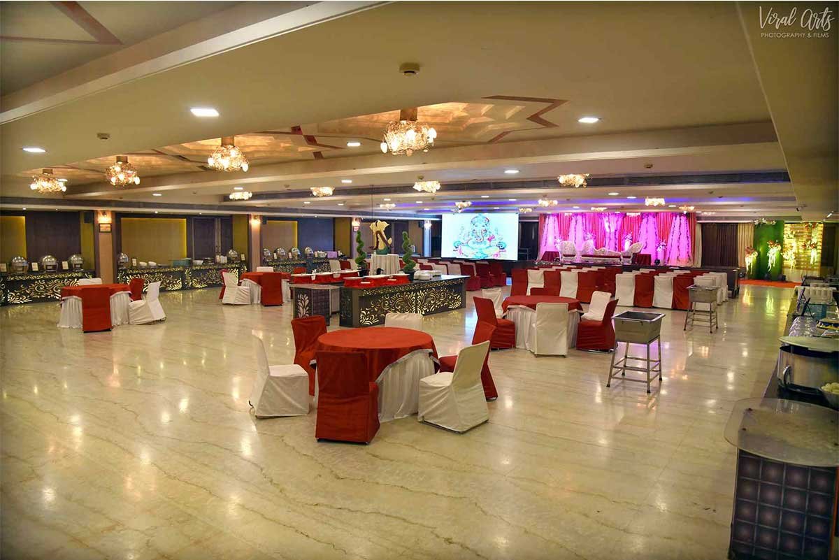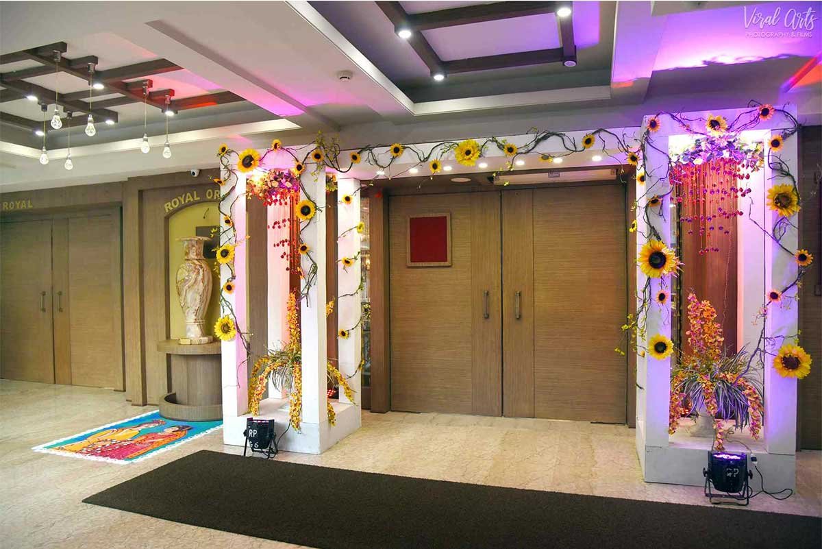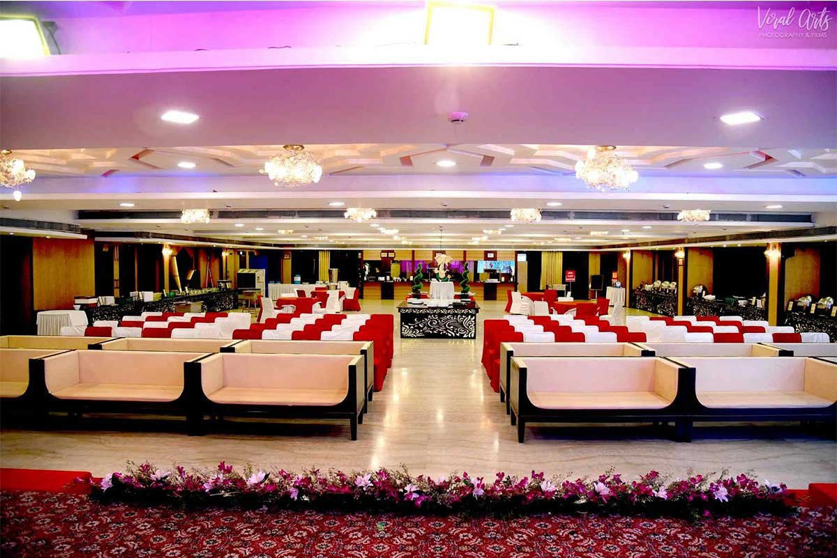 Royal Orchid as the name speaks for it self, enjoy the grand royal look of this hall decorated with flowers ,carpets and lights , Chandelier which suits the festivity you are looking for.Royal Orchid located at the Ground Floor with capacity of 700 to 800 people spread across 7500 sq.feet of carpet area is styled as theater like viewing. With facilities like top level air cooling and state of the art double rooms attached to the hall, Royal Orchid remains the most preferable of our banquet halls.